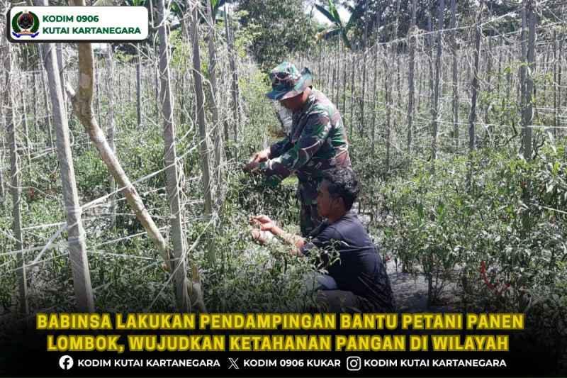 Kutai Kartanegara. pemburukriminal.com- Anggota Babinsa Koramil 0906-08/Muara Kaman Serka Nurkholis yang selalu aktif di lapangan turut membantu petani yang ada di wilayah binaan dimana Babinsa turut membantu memanen tanaman lombok dilahan milik bapak Edi bertempat di Desa Panca Jaya Kecamatan Muara Kaman, Rabu 22/4/26.
