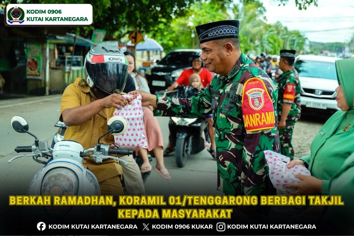 Kutai Kartanegara, pemburukriminal– Sebagai wujud kepedulian sosial dan solidaritas sesama umat muslim di bulan suci Ramadhan 1447 H, jajaran Koramil 0906-01/Tenggarong menggelar kegiatan berbagi takjil kepada masyarakat, bertempat di depan Makoramil 0906-01/Tenggarong Jalan Danau Aji Kelurahan Melayu Kecamatan Tenggarong Kabupaten Kutai Kartanegara.