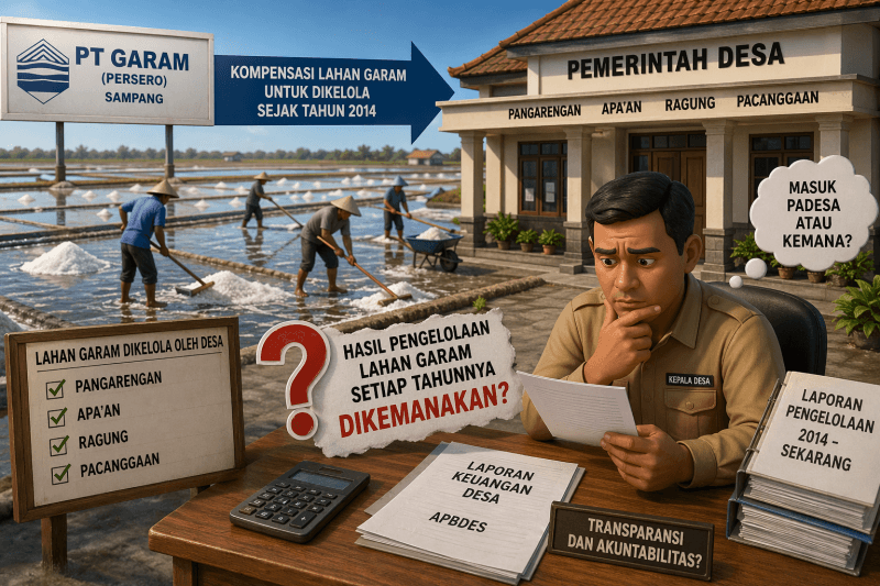 Apakah hasil pengelolaan lahan garam itu benar masuk ke kas desa—atau justru tidak pernah tercatat sama sekali?