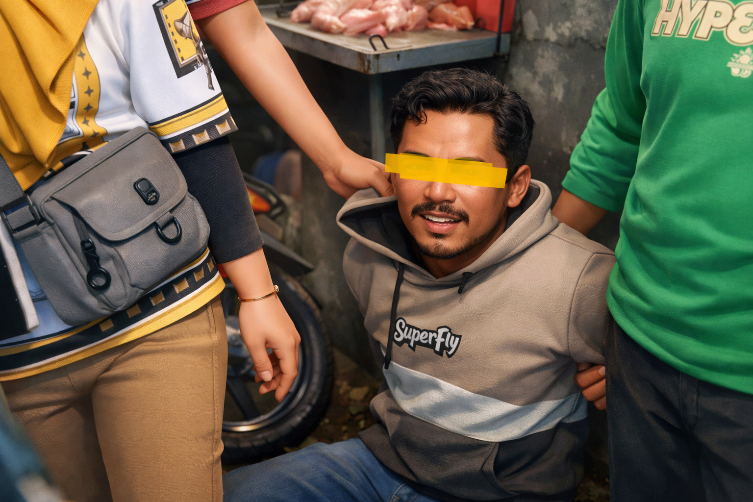 Seorang pria diduga mencoba mencuri sepeda motor milik seorang pedagang yang sedang terparkir di area pasar. Aksi tersebut diketahui langsung oleh pemilik kendaraan saat melihat sepeda motornya dinaiki oleh seseorang yang tidak dikenal.