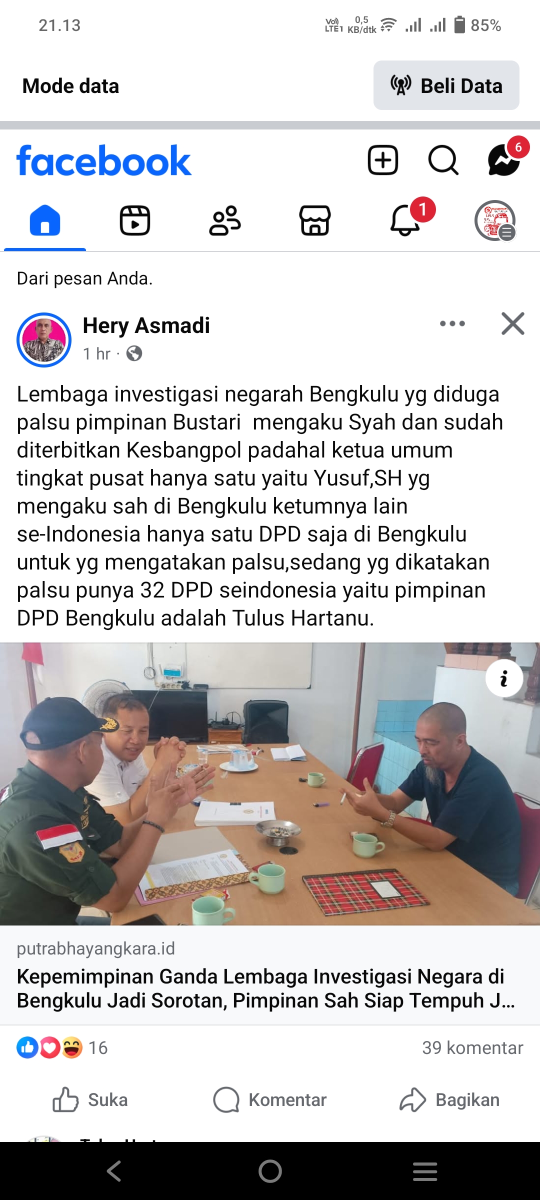 Jakarta, 29 Oktober 2025 — Lembaga Investigasi Negara (LIN) kembali menjadi sorotan publik setelah beredarnya pengakuan sepihak dari seseorang bernama Hery Asmadi di media sosial Facebook, yang mengaku sebagai anggota resmi lembaga tersebut. Namun, klaim itu langsung dibantah keras oleh R. I. Wiratmoko, Ketua Umum Lembaga Investigasi Negara, yang menilai pernyataan tersebut ngawur dan menyesatkan publik.