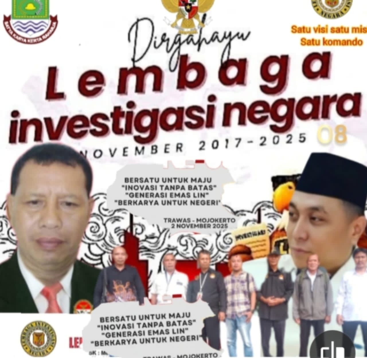 Tangerang, 1 November 2025 — Dalam momentum peringatan HUT ke-8 Lembaga Investigasi Negara (LIN), Dewan Pimpinan Cabang (DPC) Kabupaten Tangerang, Provinsi Banten, menyampaikan ucapan selamat dan dukungan penuh terhadap kepemimpinan Gus Robi Irawan Wiratmoko, yang dinilai berhasil menjaga marwah serta arah perjuangan organisasi di tengah berbagai tantangan.