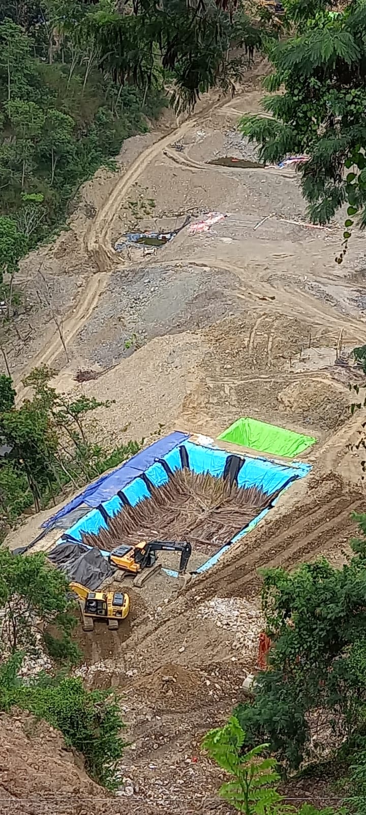 Foto : Lokasi dugaan PETI di Alason, Minahasa Tenggara. Terlihat dua ekskavator beroperasi di area galian yang diduga mengandung emas, dengan indikasi penggunaan BBM ilegal untuk mendukung aktivitas tambang.