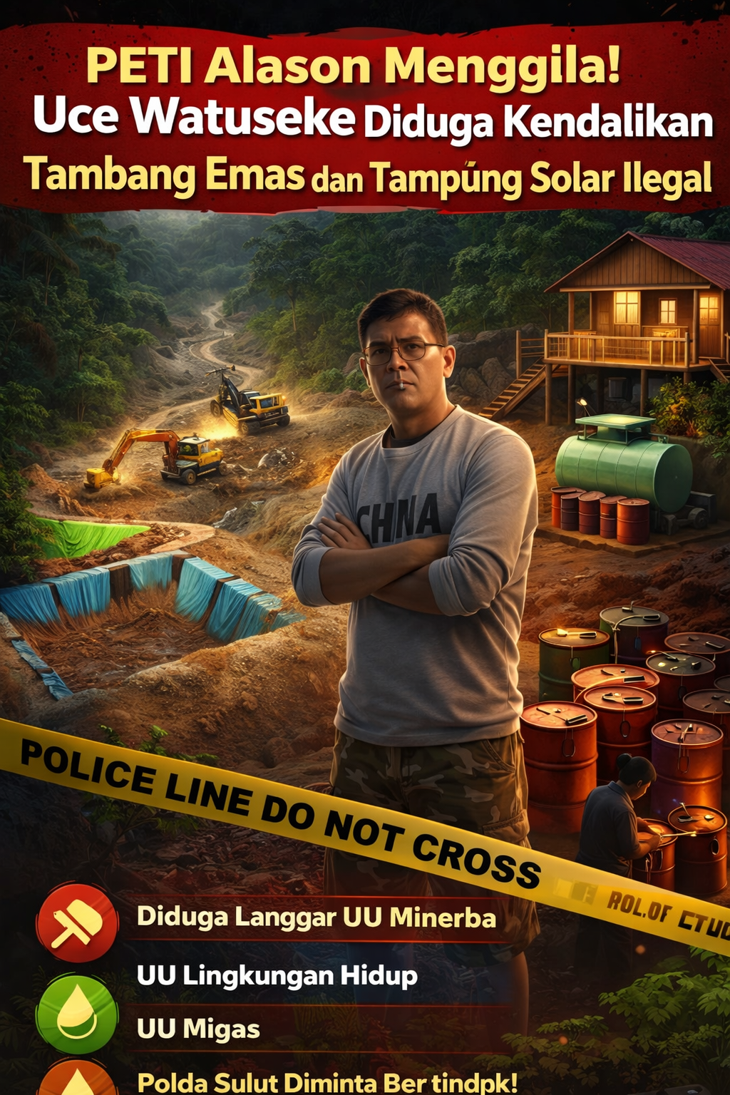 MINAHASA TENGGARA][ pemburukriminal.com — Aktivitas Pertambangan Emas Tanpa Izin (PETI) di wilayah Alason, Kabupaten Minahasa Tenggara kembali menjadi sorotan serius. Dugaan praktik ilegal ini disebut-sebut dikendalikan oleh seorang pria bernama Uce Watuseke alias Uce/Ungke.