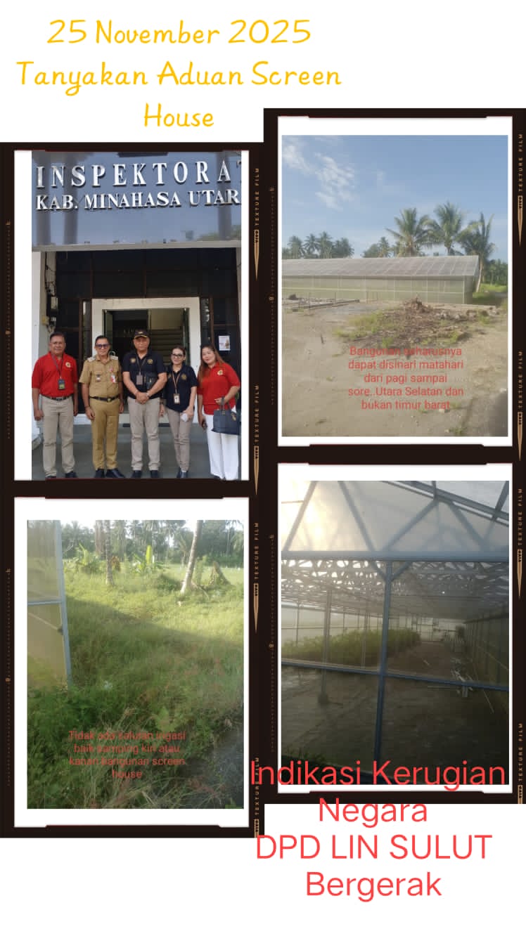 Dua pejabat LIN Sulut, Richard Umboh (Direktur Investigasi) dan Jannette Carolin Taliwongso (Sekretaris Daerah LIN Sulut), menyampaikan bahwa proyek Screen House ini sarat penyimpangan mulai dari perencanaan, penggunaan anggaran, hingga penyerapan di lapangan.