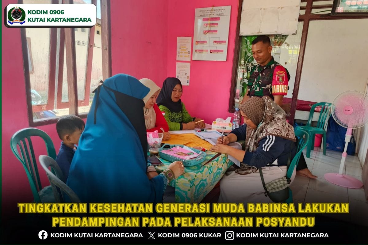 Kutai Kartanegara. pemburukriminal.com- Bentuk kepedulian terhadap kesehatan pada balita anggota Babinsa Koramil 0906-06/Samboja Sertu Andrian selalu aktif dalam melakukan pendampingan kegiatan Posyandu Mawar Putih yang berada di Kelurahan Kampung Lama Kecamatan Samboja, Sabtu 28/2/26.